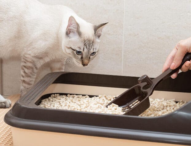 Kattenbakken verschonen: Voor katten zorg ik voor het verschonen van hun kattenbak en het bijvullen van kattenbakkorrels, zodat ze een schone omgeving hebben.